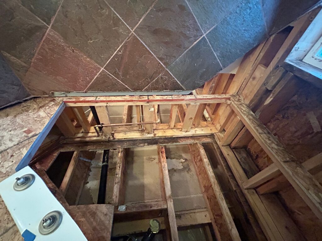 A homeowner in Parker, CO noticed subtle discoloration and musty odors in their master bathroom. Upon inspection, our team uncovered extensive hidden mold growth beneath the tile and within the subfloor, caused by a year-long moisture intrusion from faulty installation. We implemented full containment using HEPA filtration and negative air machines, removed the contaminated materials, and treated framing with antimicrobial agents. The result: a clean, safe, and structurally sound bathroom restored for use.
